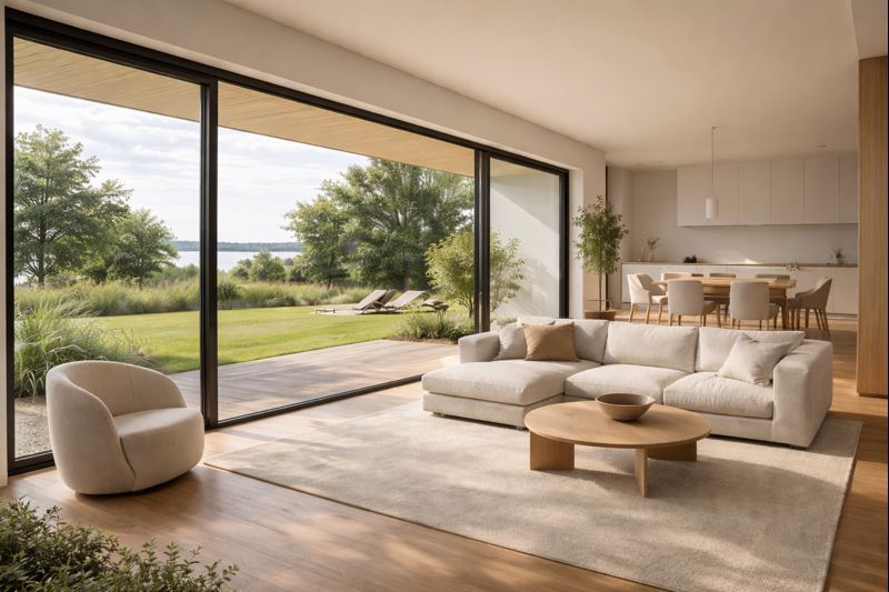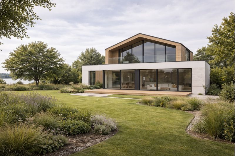 Важно понимать: современные окна — это не просто больше стекла. Это другое отношение к границе между домом и участком. Когда дом «открывается» наружу, он перестаёт ощущаться замкнутым и устаревшим.