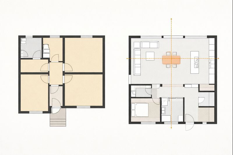 Именно планировка сильнее всего выдаёт возраст дома. Старые здания проектировались под другие сценарии: отдельные комнаты, длинные коридоры, минимальное внимание к естественному свету. Современный дом строится вокруг движения, света и воздуха.
